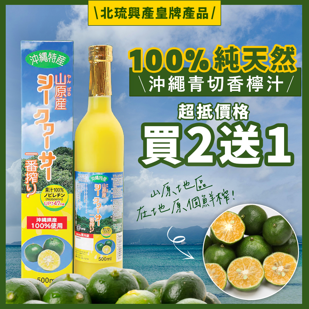 【✌🏻買二送一 + 📦 包郵!】【皇牌產品】北琉興產山原地區鮮榨100%青切香檸果汁 500ml