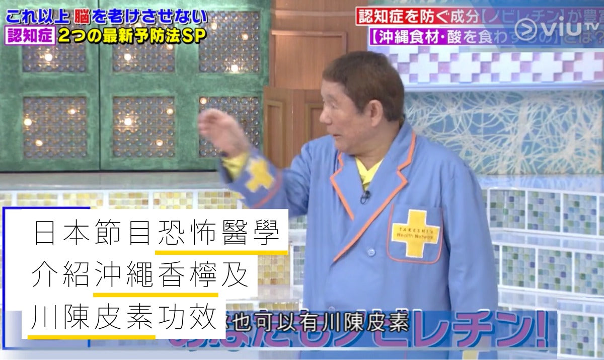 香港嘅電視台都有購入的日本健康綜藝節目-恐怖醫學介紹了如何預防認知障礙症,而其中一種方法就是食用/飲用沖繩香檸。